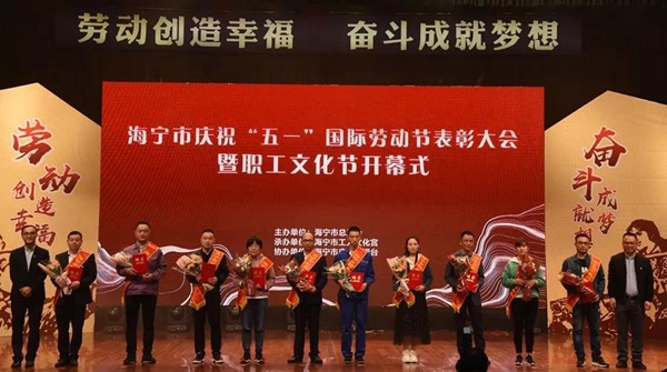 會上,10名2019年度海寧市最美職工、10名2019年度最美職工娘家人、20名海寧市第六批職業(yè)技能帶頭人和10家2019年海寧市“六好”品牌工會、11家2019年度海寧市高技能人才創(chuàng)新工作室受到表彰。宏達高科織造部陳國明被評為海寧市第六批職業(yè)技能帶頭人,并上臺接受表彰。